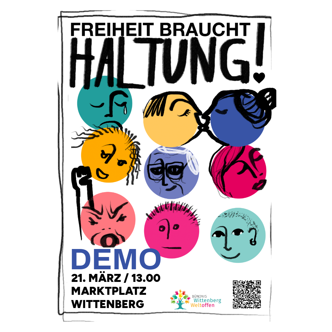 Freiheit bedeutet nicht die Rechte weniger – sondern Würde und Schutz für alle. Wer unsere demokratischen Werte schätzt, ist eingeladen, mit uns für ein offenes, vielfältiges Wittenberg einzustehen.